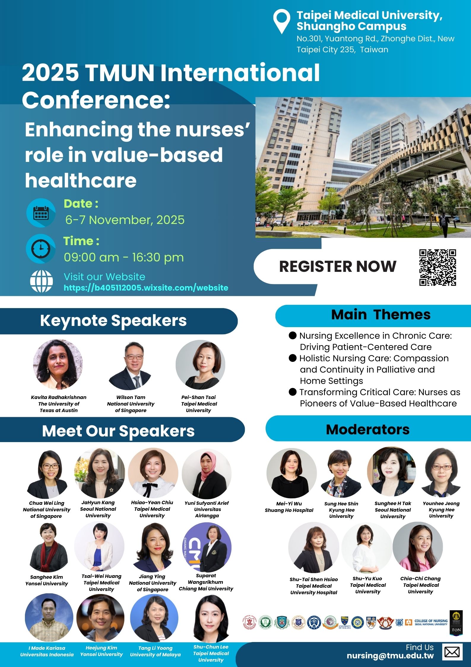 一、本校護理學院訂於114年11月06日至11月07日舉辦「2025臺北醫學大學護理學院國際研討會價值導向醫療照護:護理的角色」。二、本研討會議程、徵稿資訊及報名資訊敬請參閱附件。報名網址:https://reurl.cc/3MV9j8【線上報名】。三、本研討會發予研習證明書,並獲得護理師/專科護理師繼續教育積分。